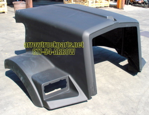 2007 & Up Kenworth T800 New Aftermarket Hood For Curved Windshield, 60.5″, With Half Fender, Air Breather Cutouts & 5 Bolt Hinge. This item is manufactured of one piece fiberglass construction, replaces the Metton hood, will fit a curved windshield cab (the back of the fender stays on the cab when tilting the hood), and measures 60.5 inches top middle-back to front. Please check for these having the cutout – some are not. Parts Identification: the use of the original manufacturers’ part number or name is for reference purpose only. Please pre-fit this hood prior to painting. Inspection and fit-up is required prior to painting to ensure proper fit.